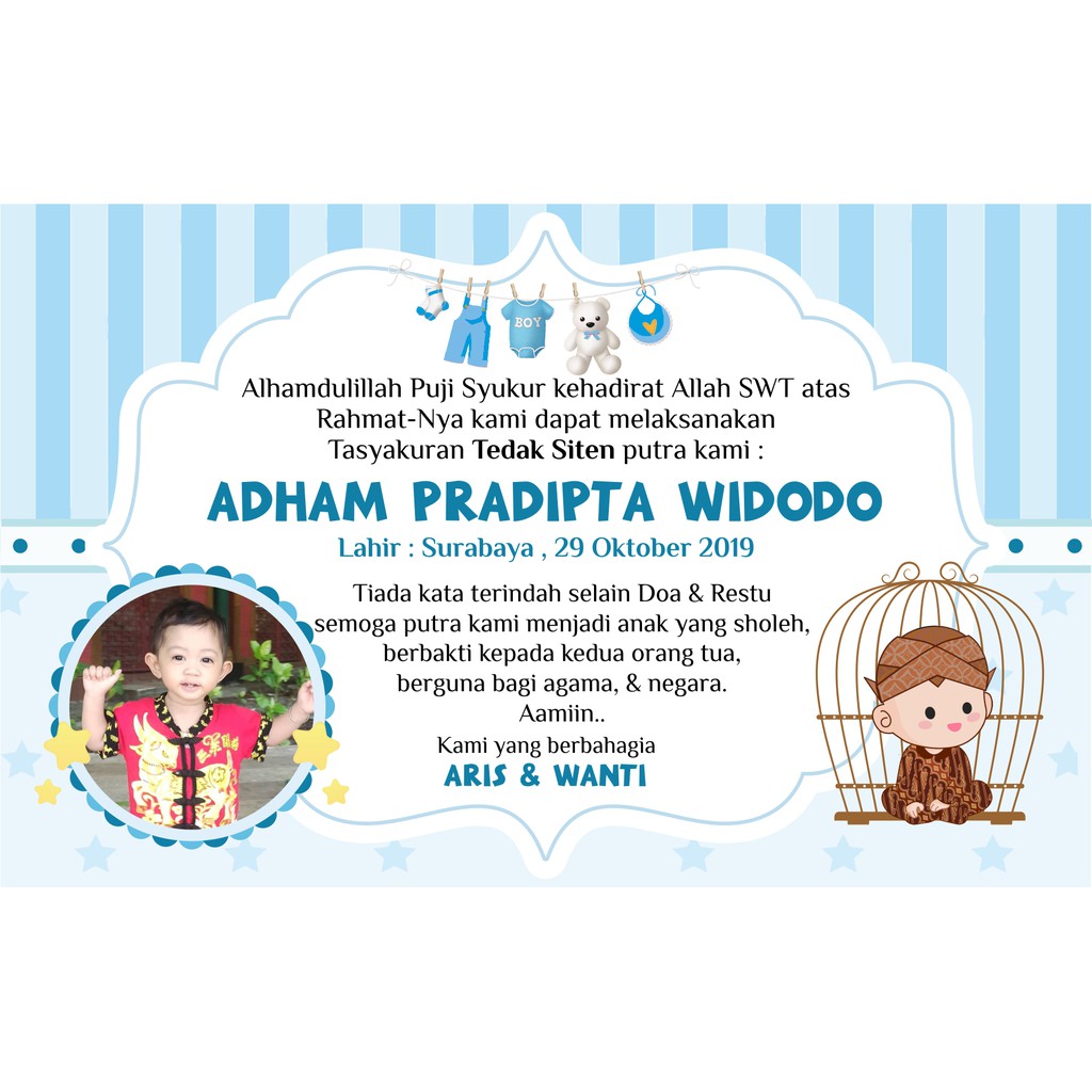 Hang tag souvenir thankyou card kartu ucapan sovenir ultah anak tag tedak siten tasyakuran aqiqah turun tanak kartu ucapan custom tasyakuran kehamilan . Kumpulan gambar tentang ukuran kartu ucapan aqiqah, klik untuk melihat koleksi gambar lain di kibrispdr.org. Untuk gambarnya sebagai background tidak bisa ditampilkan disini, . 20 koleski terbaru contoh desain stiker tedak siten. Download template banner tedak siten cdr mas vian.
